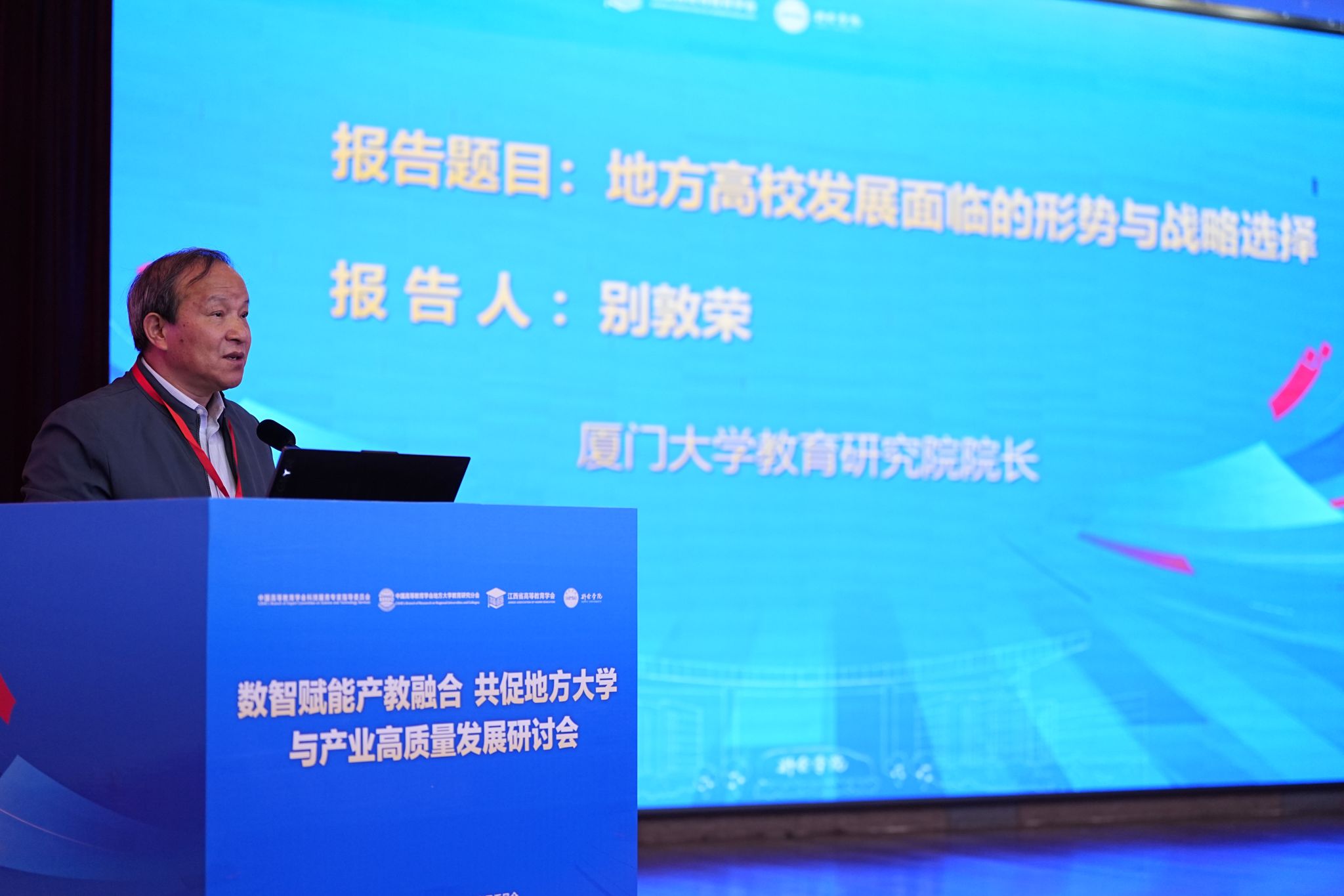 厦门大学教育研究院院长别敦荣教授作《地方高校发展面临的形势与战略选择》主题报告。报告梳理了当前地方高校面临的外部竞争压力与内部发展瓶颈,明确指出了制约其高质量发展的核心问题。报告提出,地方高校需紧密结合区域产业布局特点,坚守“应用型”根本定位,摒弃盲目追求学科门类齐全的发展模式,转而聚焦区域优势产业,集中力量打造特色专业集群,推动高校发展深度融入区域经济社会发展,实现校地协同共进。
