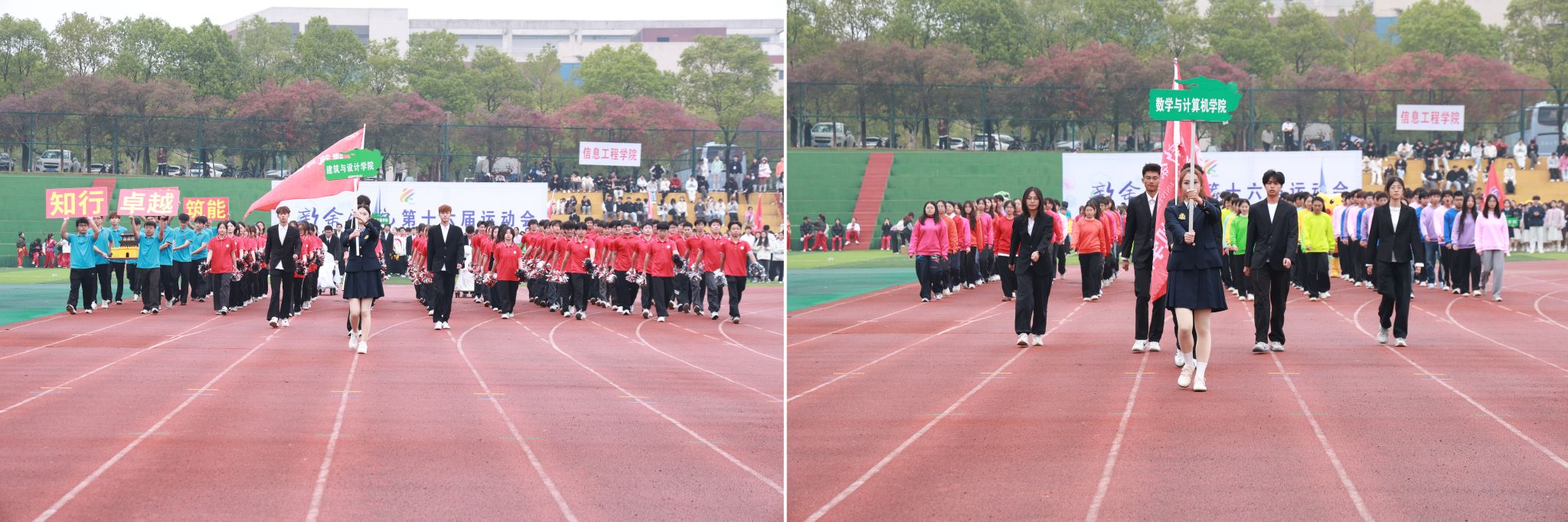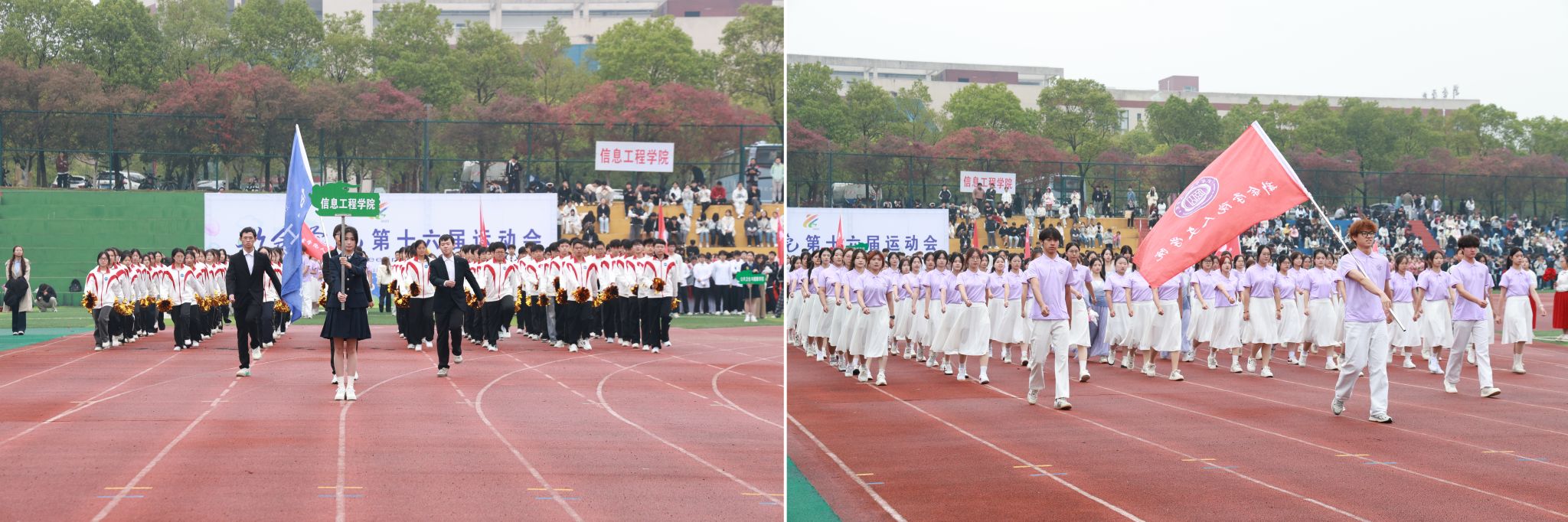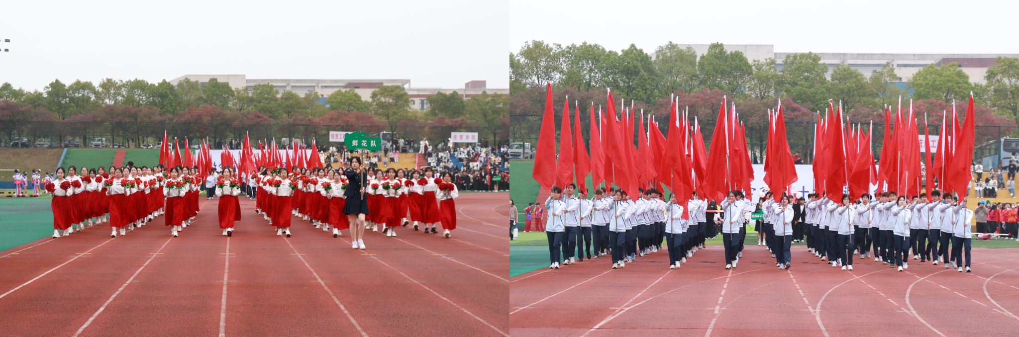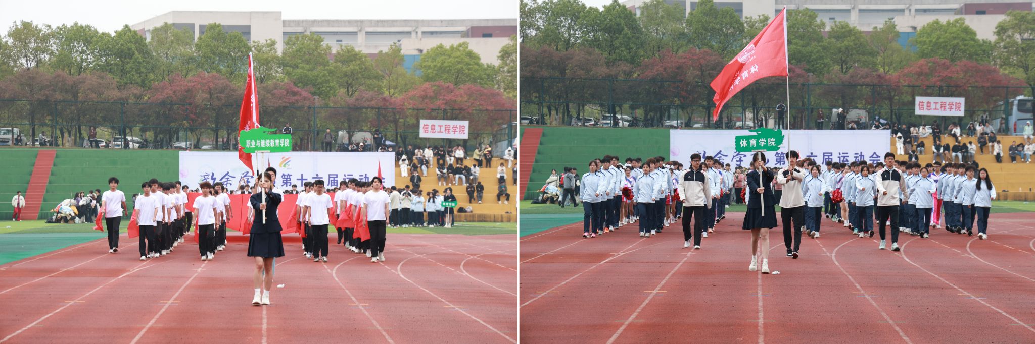 开幕式上,伴随着热情洋溢的运动会进行曲,各方阵队依次入场。国旗护卫队昂首挺胸,迈着坚定的步伐,护卫着鲜艳的五星红旗。各二级学院方阵身着特色服饰,迈着整齐的步伐,喊着响亮的口号入场,他们结合各自专业元素,融入优美动人的舞蹈、青春洋溢的健美操、现代与传统交织碰撞的情景展示、独具传统意蕴的舞狮表演,独特的创意、抖擞的精神,充分展现了我校学子昂扬向上、追求卓越的精神风貌。教工队和裁判方阵紧随其后,他们手持花束,和着轻快的舞步,脸上洋溢着活力与微笑,成为开幕式现场一抹温馨的亮色。新院师生的这份精气神,既是对学校四十年发展过往成就的致敬,更是对未来征程的坚定承诺。