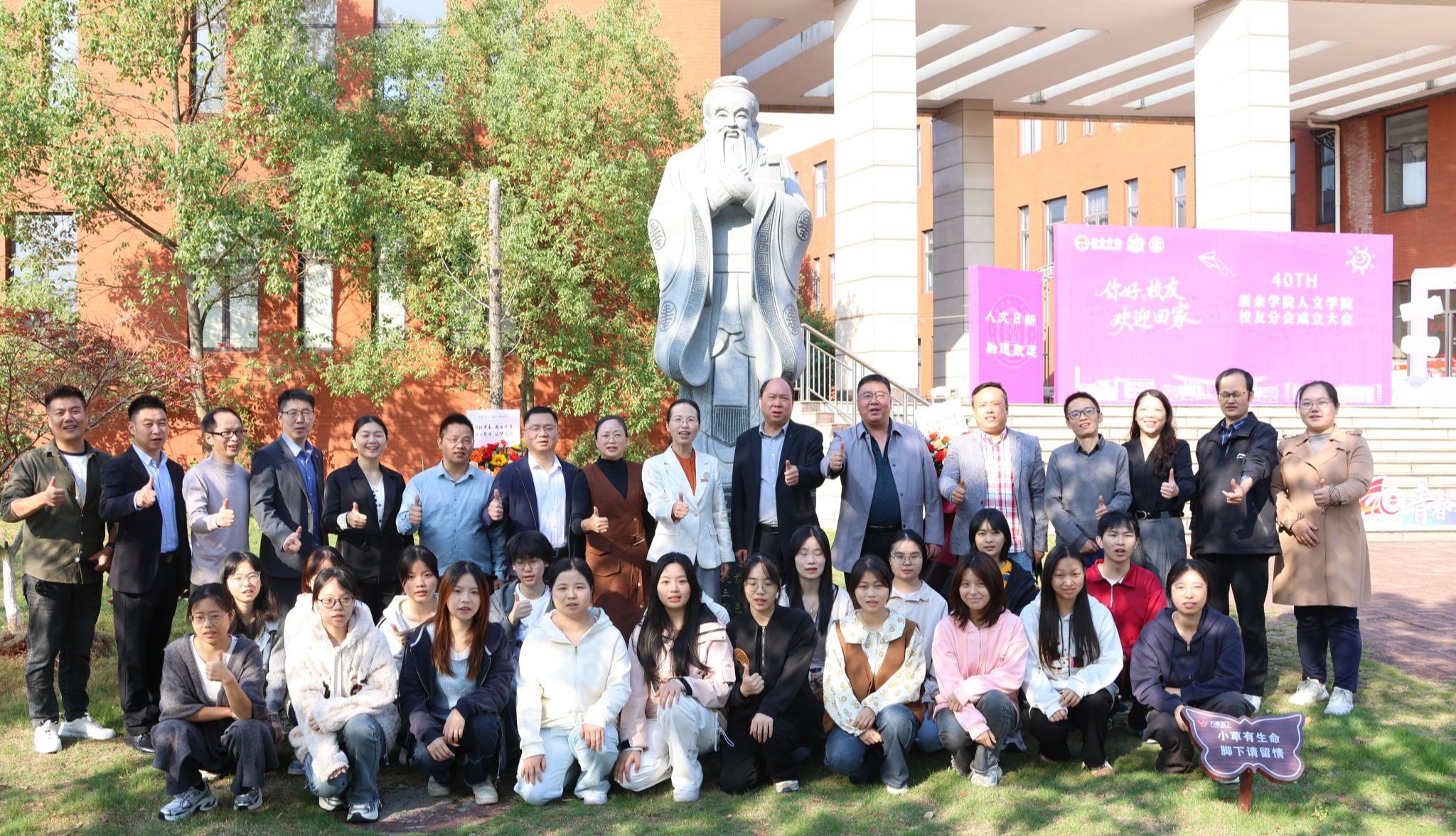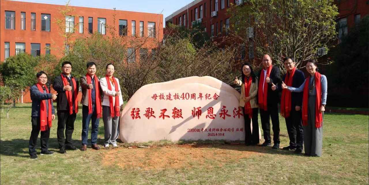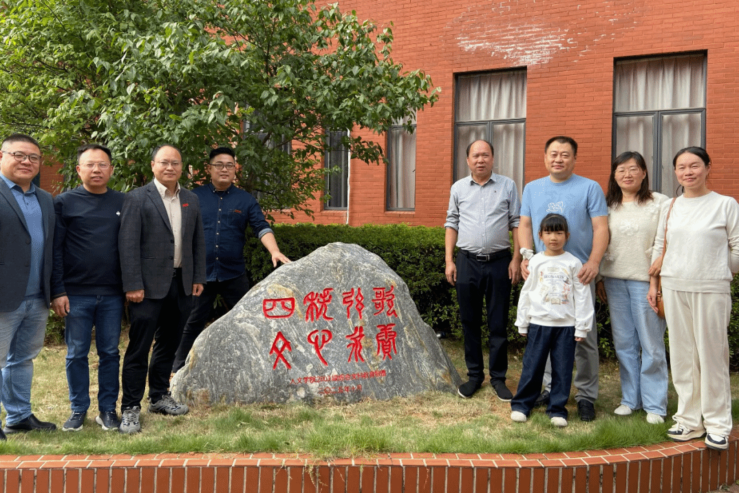实物捐赠见深情,人文精神在校园生根。97级中文班捐赠的孔子像在人文学院大楼前庄严落成,传承着“学而不厌、诲人不倦”的治学之道;2000级中文本科班、2003级综合文科班捐献的景观石上,“弦歌不辍,师恩永沐”“四秩弦歌,文心永续”的刻文,饱含感念师恩、回馈母校的赤子之心。