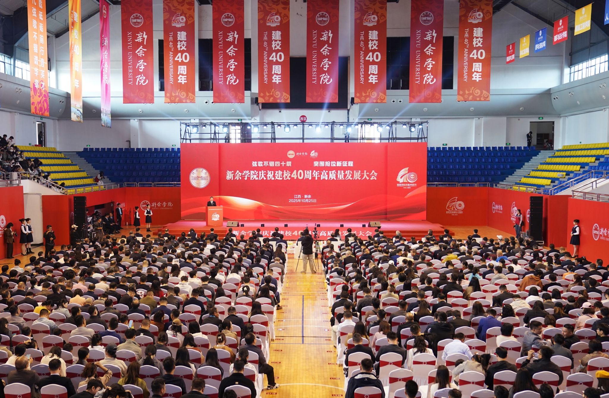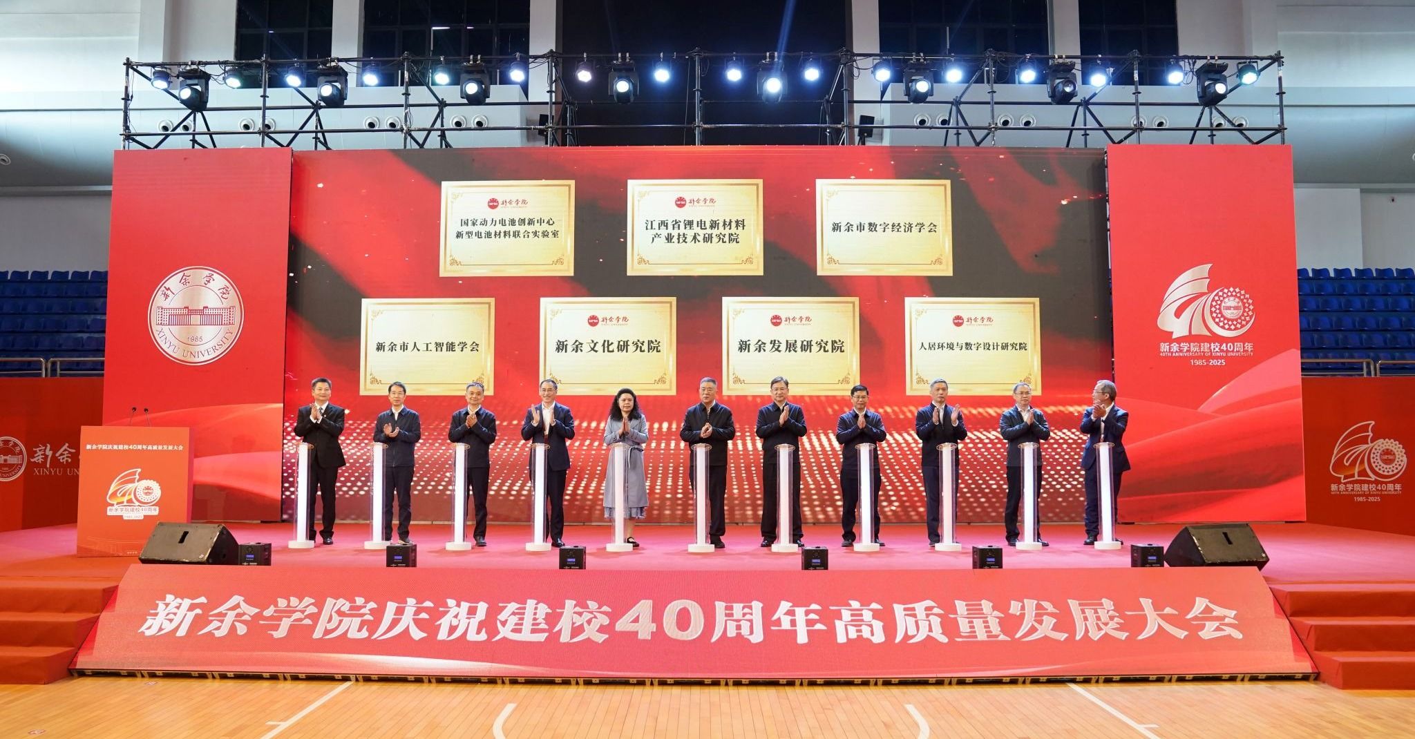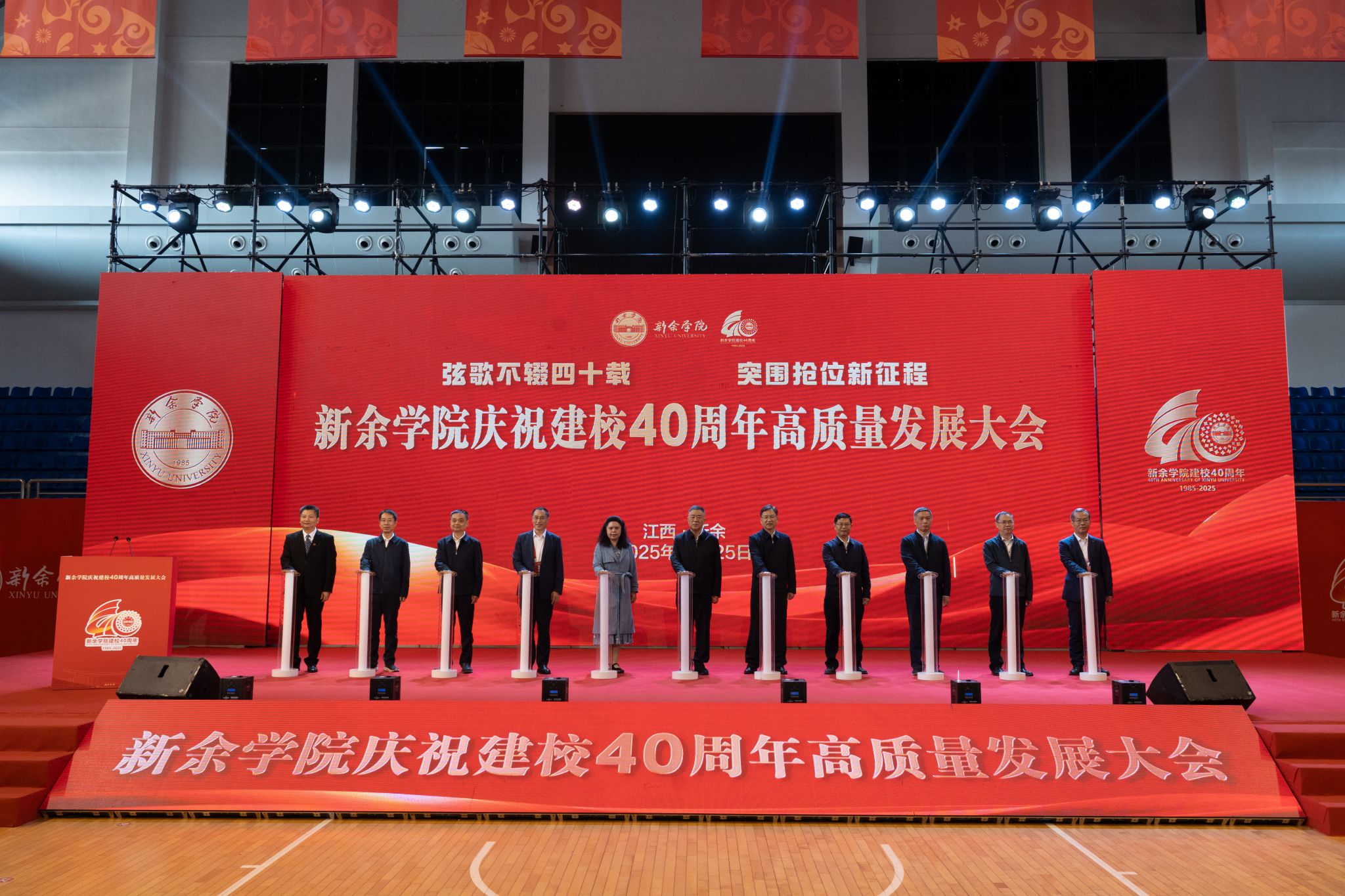 四十年风雨兼程,四十载薪火相传。新余学院40周年校庆,以人文铸魂,以学术立根,以校友聚力,以发展扬帆。它既是对过往辉煌的深情礼赞,更是对未来征程的豪迈宣言。站在新的历史起点,全体师生与海内外校友将以建校40周年为契机,赓续新院精神,勇担使命、砥砺奋进,在建设特色鲜明的高水平应用型本科院校的新征程上奋楫前行,为谱写中国式现代化江西篇章贡献磅礴的“新院力量”!