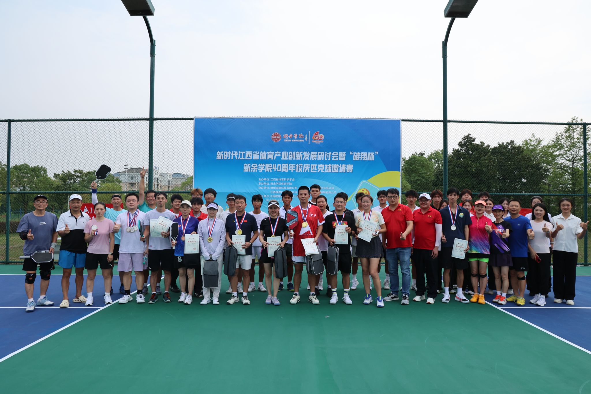 多元文体活动营造浓郁校庆文化氛围。9月26日至27日,诗咏高铁新区暨高校创意写作服务地方发展论坛成功举办,全国文艺界代表与校内师生共聚,以采风创作、诗歌吟诵和学术研讨,诗意勾勒新余高铁新区的发展新貌,探索高校创意写作服务地方文化建设的新路径。9月28日,“碳翔杯”校庆匹克球邀请赛吸引60余名爱好者参与,这项新兴运动以其独特的魅力成为校园体育的新亮点。10月21日,“四秩奋进路,奔跑新征程”校园欢乐跑火热开启,1600余名师生以奔跑方式庆祝校庆,校园内处处洋溢着蓬勃的朝气与青春活力。