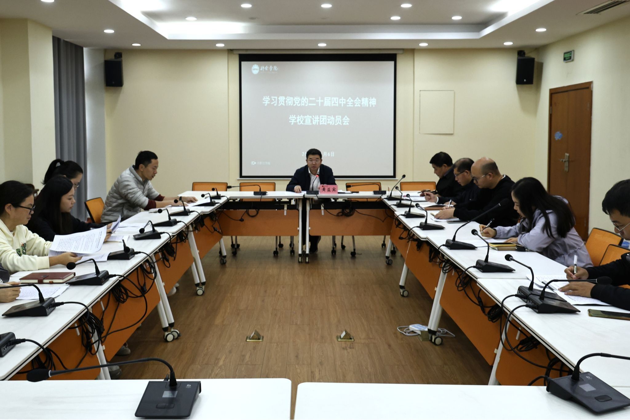为扎实做好党的二十届四中全会精神宣讲工作,11月6日下午,学校举行学习贯彻党的二十届四中全会精神宣讲动员会。校党委委员、副校长黄益宾出席会议并讲话。校党委委员、宣传部部长钟钺主持动员会。学习贯彻党的二十届四中全会精神学校宣讲团成员参加会议。