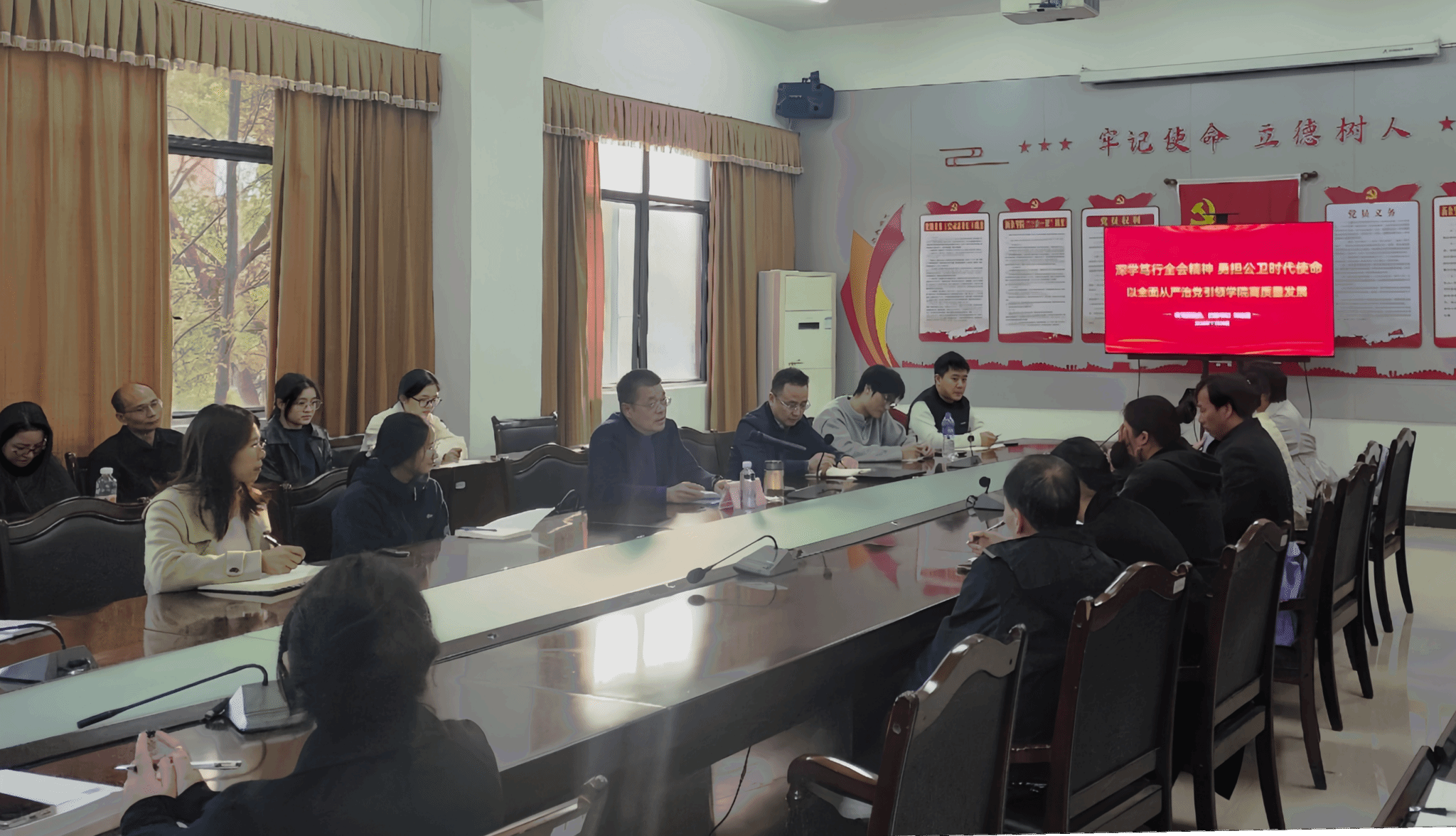 刘志勇围绕《深学笃行全会精神,勇担公卫时代使命——以全面从严治党引领学院高质量发展》主题,从“提高政治站位,深刻领会全会重大意义与核心要义”“立足学科特色,找准全会精神与公共卫生事业发展的结合点和发力点”“强化纪律保障,以全面从严治党引领学院事业行稳致远”三个方面系统解读了全会精神。他强调,要深刻领会全会的重大意义与核心要义,准确把握其“锚定‘十五五’、奠基‘现代化’”的时代方位,深入理解其蕴含的战略考量与实践要求,将思想和行动统一到全会部署上来,切实将全会精神转化为推动学院高质量发展的实际行动与成效。要深刻认识以全面从严治党引领学院事业发展的重要性,要强化政治领航、压实主体责任、带头担当作为、严守纪律规矩,营造风清气正的育人环境,为学院高质量发展提供坚强纪律保障。