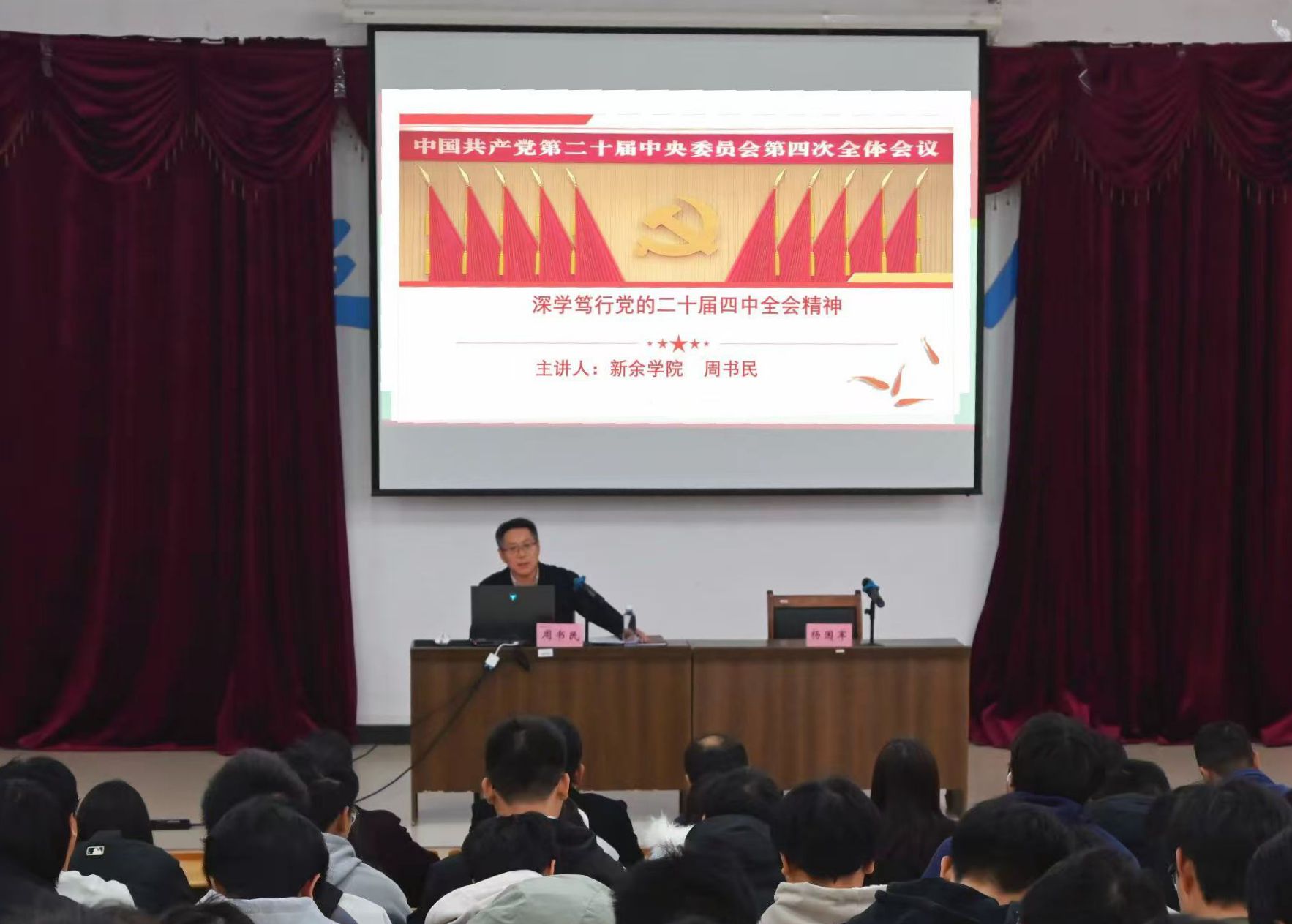 11月25日,校党委委员、副校长周书民走进机电工程学院开物讲堂,为机电工程学院、信息工程学院师生宣讲党的二十届四中全会精神。两院班子成员、全体坐班人员和学生代表参加。