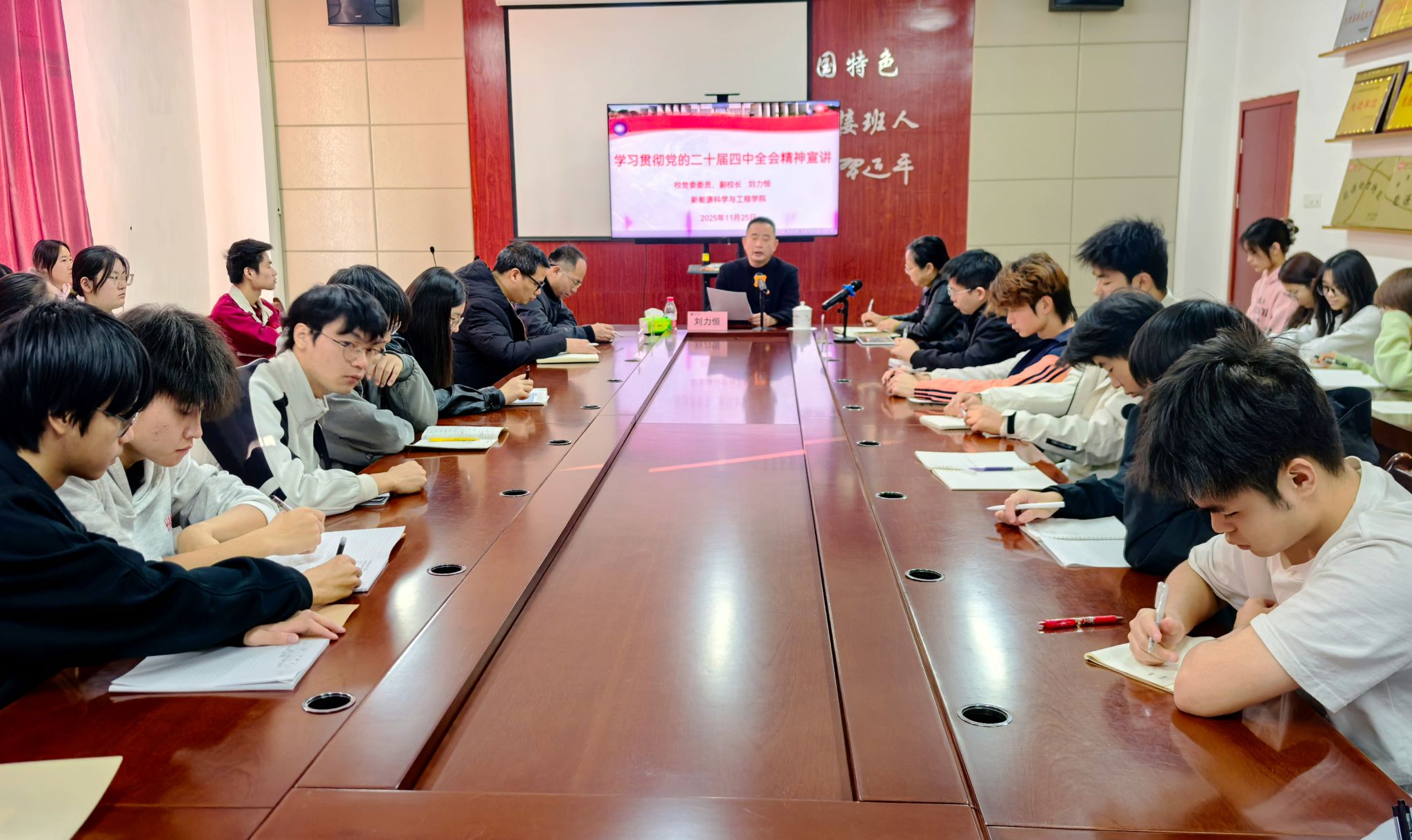 11月25日下午,校党委委员、副校长刘力恒深入新能源科学与工程学院,为“青马”班学生宣讲党的二十届四中全会精神。