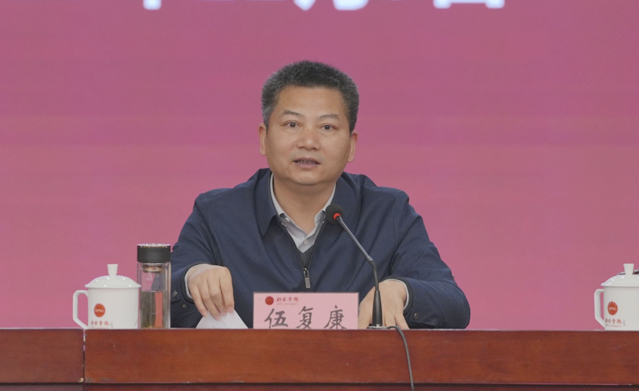 伍复康指出,全校上下要认真学习领会省委十五届九次全会和市委九届十一次全会精神,紧扣省、市战略安排和发展目标,以钉钉子精神抓好贯彻落实,以工作实绩检验学习贯彻成果。要深刻把握校庆和教育教学审核评估“两件大事”的历史意义与时代价值,在总结经验中汲取智慧力量,在凝练精神中筑牢信仰根基;要清醒认识这“两面镜子”映照的深层问题与现实挑战,在反思差距中保持冷静头脑,在直面矛盾中明确改革方向;要系统谋划岁末年初的“任务书”与“施工图”,在统筹兼顾中把握工作重点,在精准发力中实现攻坚突破;要全面压实责任强化担当作为,以过硬作风确保学校党委决策部署落地生根、开花结果。