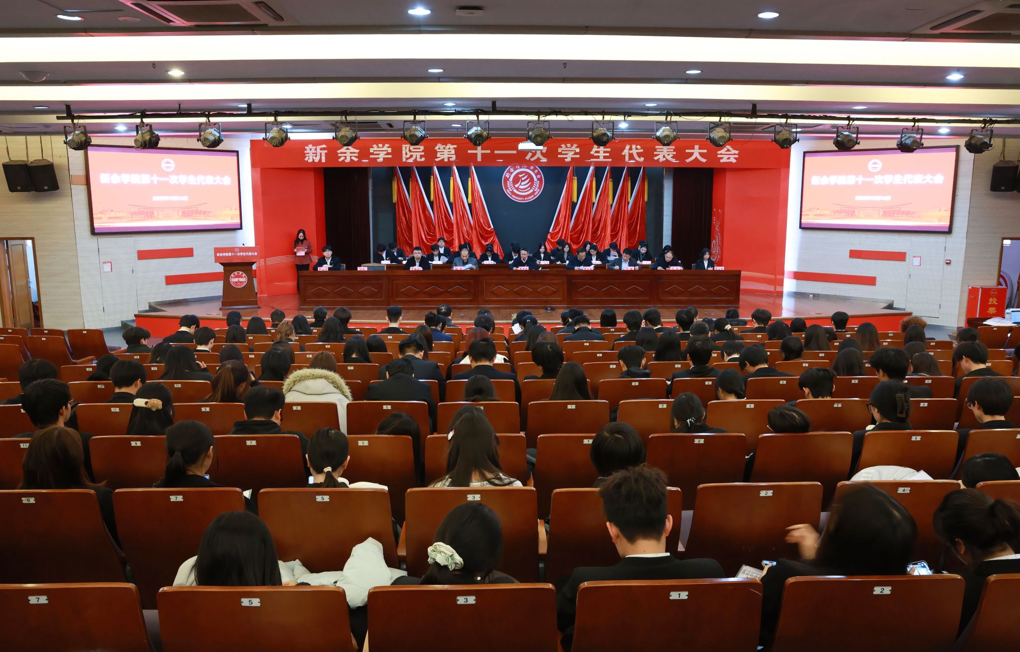 在激昂的《国际歌》声中,新余学院第十一次学生代表大会圆满完成各项议程,胜利闭幕。本次大会选举产生新余学院新一届学生委员会委员、新一届学生会组织主席团人选、新一届学生会执行主席。