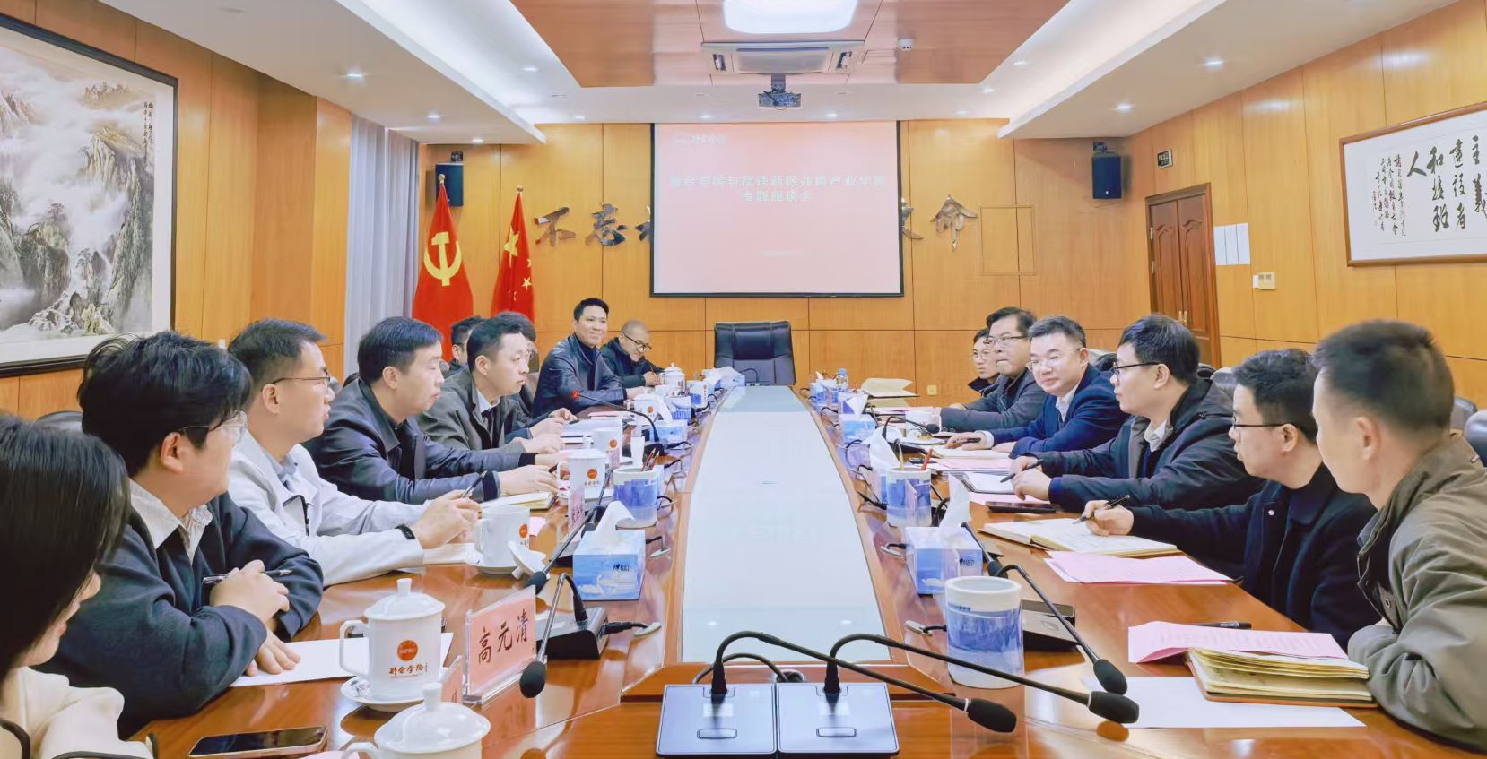 座谈中,双方与会人员围绕产业学院选址方案优化、学生住宿与生活配套保障举措、课程共建与教材开发、实习实训基地建设、师资双向互聘、产学研项目联合公关等核心议题深入交流,在多个关键合作环节达成共识。双方约定,将建立常态化沟通机制,加快推动各项目合作意向落地见效。