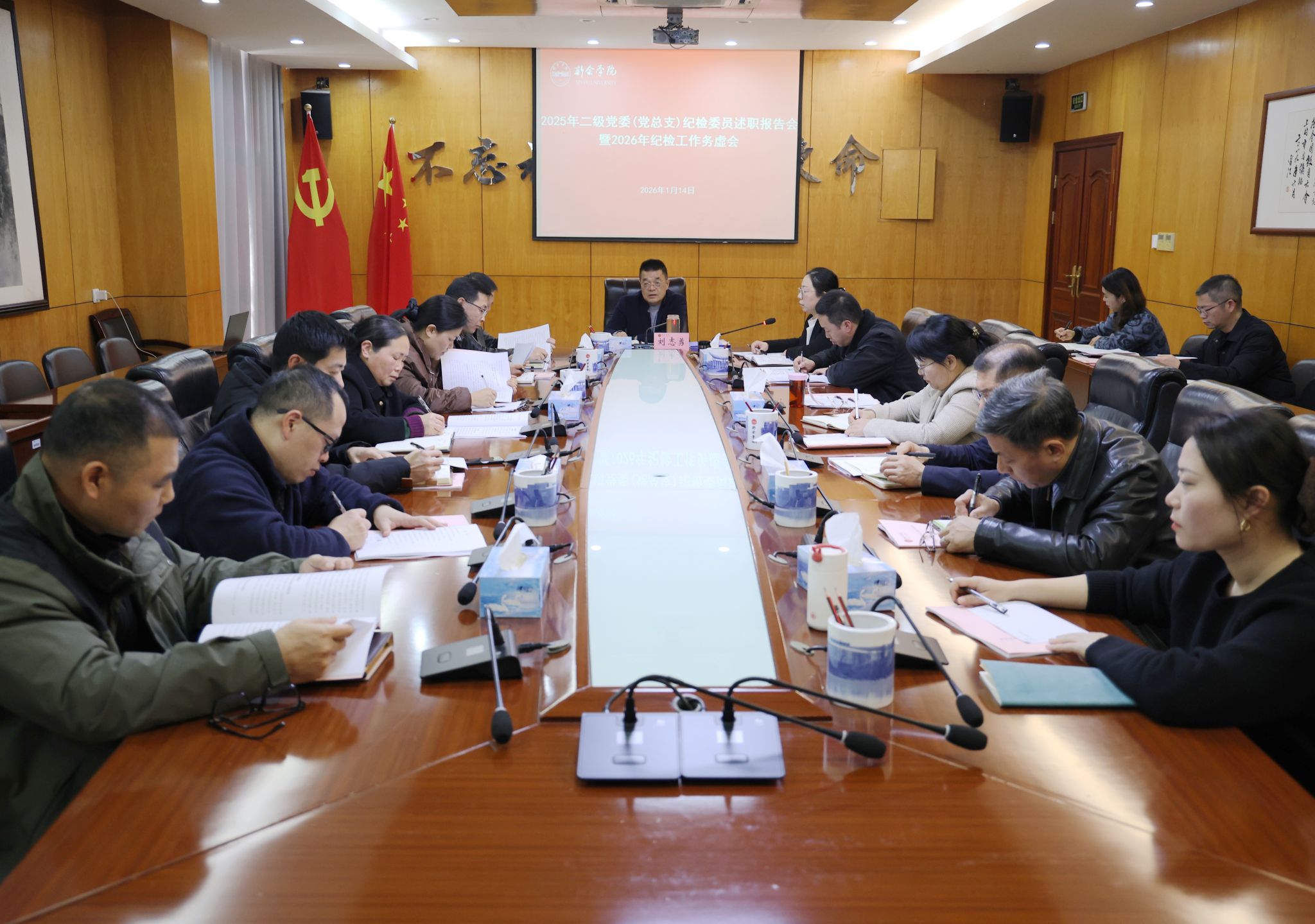 1月14日,学校召开2025年二级党委(党总支)纪检委员述职报告会暨2026年纪检工作务虚会,会议全面回顾总结2025年全校纪检监察工作成效,系统谋划部署2026年纪检工作重点任务。校党委委员、纪委书记刘志勇出席会议并讲话。校纪委全体纪检干部、各二级党委(党总支)纪检委员参加会议。