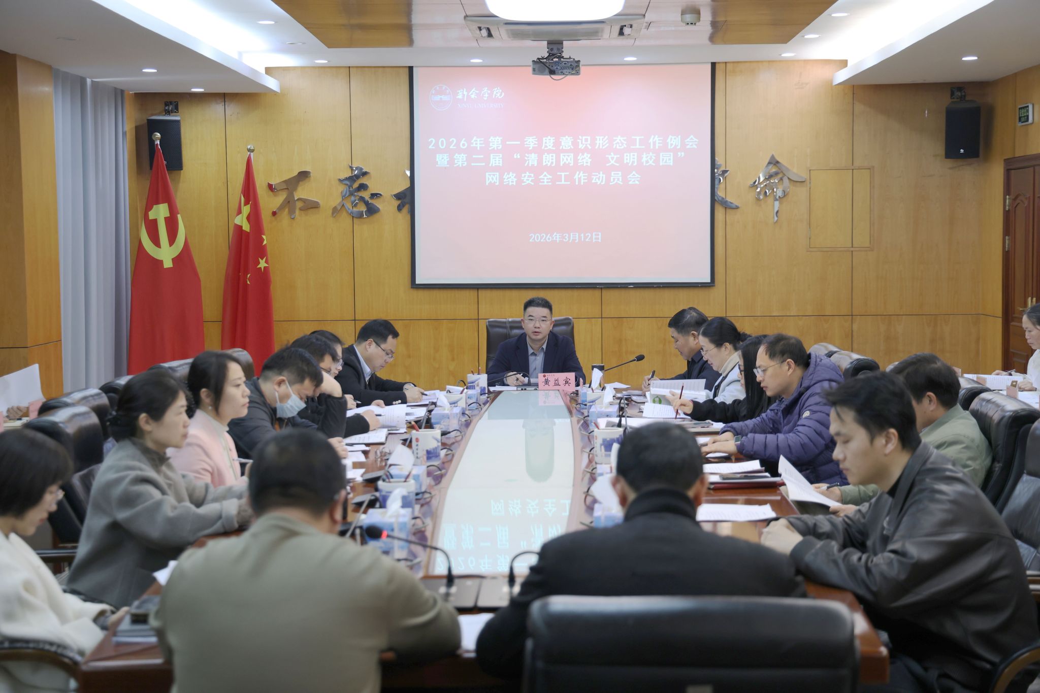 为深入学习贯彻习近平文化思想,全面落实意识形态与网络安全工作责任,3月12日,学校召开2026年第一季度意识形态工作例会暨第二届“清朗网络 文明校园”网络安全工作动员会。校党委委员、副校长黄益宾出席会议并讲话,校党委委员、宣传部部长钟钺主持会议。学校相关职能部门、各二级党委负责人及相关人员参加会议。