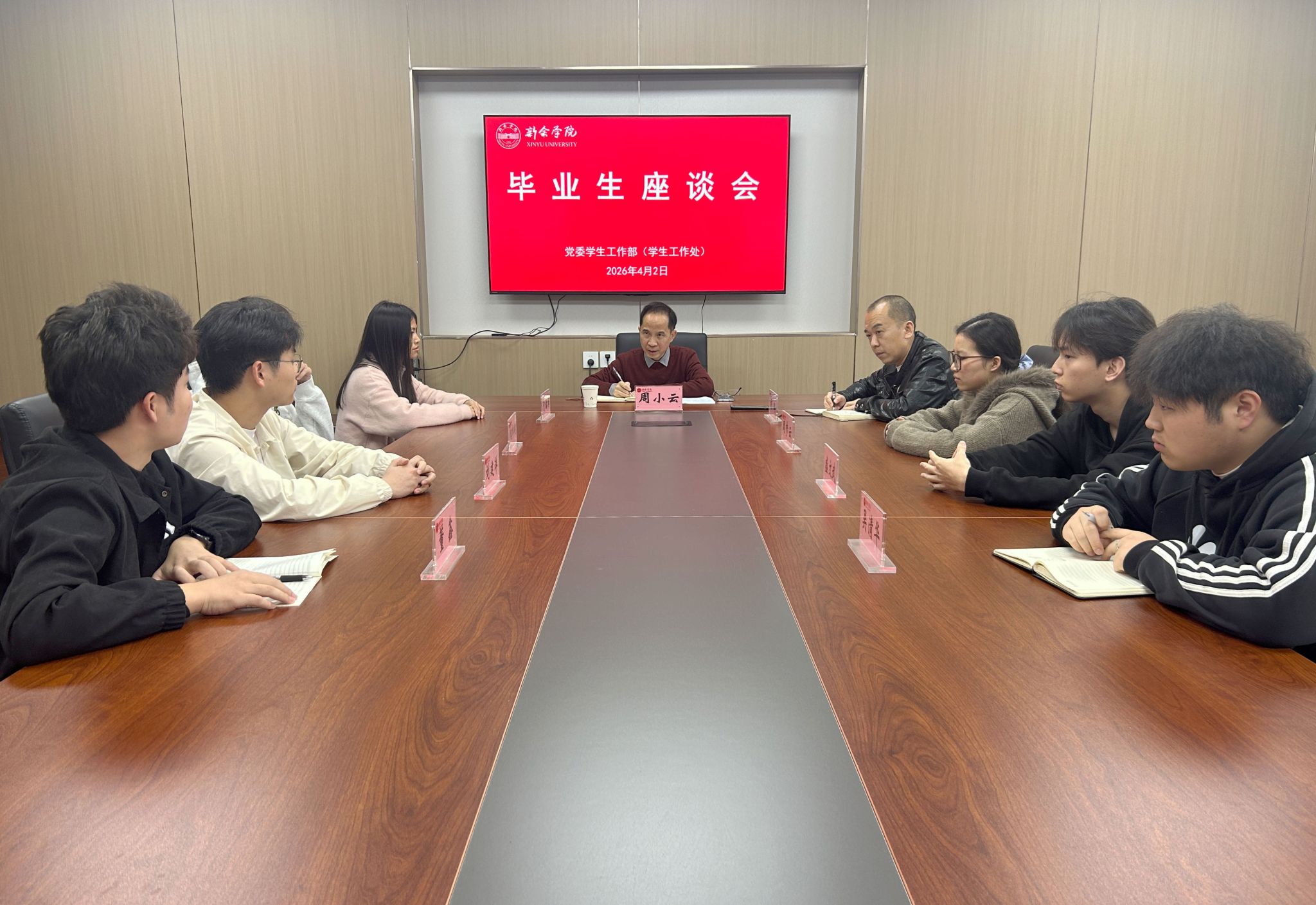 周小云指出,毕业生是学校人才培养成效的直观展现,大家在校学习生活的切身感受与意见建议,是学校优化教育教学、提升管理服务水平的重要依据。他鼓励毕业生代表畅所欲言、坦诚交流,结合自身在校期间的学习生活经历,为学校高质量发展建言献策。