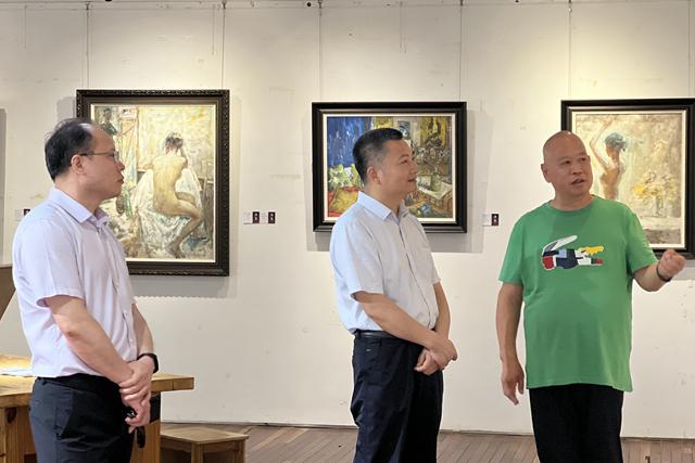 观展期间,曾颖教授向校领导介绍了作品的创作思路、绘画主题、表现手法等。听取介绍后,伍复康对曾颖教授从教以来为学校发展所做的贡献表示了感谢,对曾颖教授在艺术领域取得的成绩予以了高度评价,本次展出的其从教34年以来的教学和艺术创作百余件成果和作品,充分展示了曾教授始终如一的教学初心和对艺术对生活充满热爱的原色气息,并希望以后能以专业所长继续支持学校的发展。