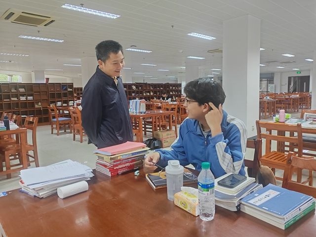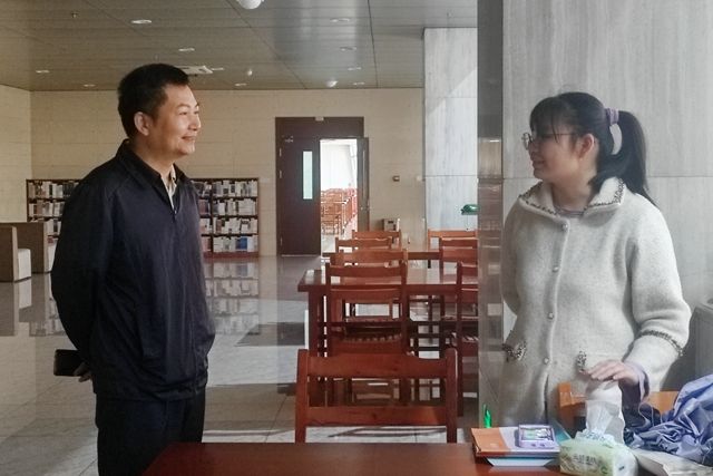 为了解学生的学习和思想情况,4月4日上午,正值清明假期,校党委书记伍复康在值班人员陪同下,走访了学校教学楼和图书馆等学习场所,并与同学们进行亲切交流。