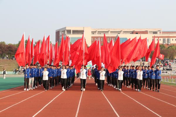 伴随着铿锵有力的运动员进行曲,国旗、奥林匹克旗、会旗、会徽、彩旗方阵、鲜花队、各二级学院代表队及教工队、裁判员方阵队相继入场。整齐划一的方阵、坚定有力的步伐赢得了现场观众的阵阵喝彩。各方阵队独具特色,将现代元素与传统元素相结合,以舞龙、汉服、体育舞蹈、花伞等形式为观众带来一场视觉盛宴。队员们英姿飒爽,斗志昂扬,传递着青春风采,释放着青春活力。