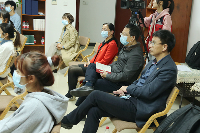 胡龙华简要介绍了测评组来校开展思政工作质量测评的目的、意义、要求和内容。刘冬代表学校党委作了题为“铸魂固本、立德树人,努力开创思想政治工作新局面”的2019年学校思政工作情况汇报。刘冬强调,学校坚持以习近平新时代中国特色社会主义思想为指引,深入学习贯彻习近平总书记关于教育的重要论述,深入贯彻落实全国高校思想政治工作会议精神和学校思想政治理论课教师座谈会精神,以立德树人为根本任务,坚持把思想政治工作贯穿教育教学全过程。一是加强组织领导,完善体制机制;二是坚持核心价值引领,强化思想理论教育;三是夯实工作基础,建设高素质教师队伍;四是打造最关爱学生校园,构建三全育人体系。刘冬表示,学校将进一步深入学习贯彻习近平新时代中国特色社会主义思想,深入学习党的十九届五中全会精神,牢记使命,立德树人,为党育人,为国育才,进一步强化主体意识和责任意识,狠抓工作落实,推动学校思想政治工作迈上新的更高的台阶。