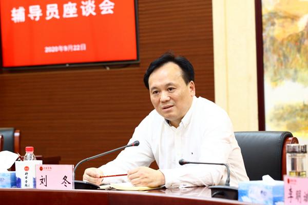 在听取大家发言交流后,刘冬对辅导员工作予以充分肯定,对辅导员为学校人才培养作出的贡献表示感谢。他强调,辅导员是学校落实立德树人根本任务的重要力量,学校加强党的领导、加强党的建设、加强学生思想政治工作的生力军。他要求,辅导员要加强学习、提升自我,要用习近平新时代中国特色社会主义思想武装头脑,学懂弄通做实;要在实践中不断学习,做好学生的“四个“引路人;要爱岗敬业、扎实工作,要热爱职业,对辅导员工作要有情怀、有责任。