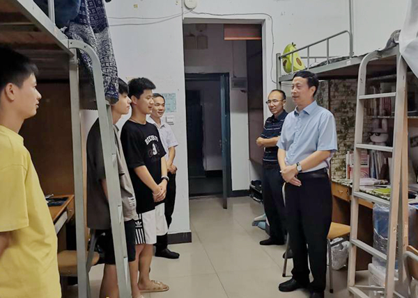9月6日晚,校党委书记刘冬来到学生食堂、校园超市检查制止餐饮浪费及食品卫生安全等情况,并走访学生宿舍,党委副书记李明斌,党委委员、组织部部长姚伟及相关部门负责人陪同。同日,校长张玉清,党委委员、副校长陈裕先、李敏、龚丽春、徐忠麟,宣传部部长周文生、统战部部长曾浩武等分别走访学生宿舍。