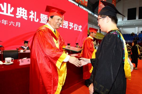 刘冬书记向圆满完成学业的2020届毕业生表示热烈祝贺,向精心培育学生、为同学们倾注心血的老师、家长表示衷心的感谢和崇高的敬意。刘冬表示,四年来,同学们在这所充满青春活力的校园,汲取知识智慧,书写阳光故事,锤炼了品德修养、夯实了专业基础、学会了做人处事。用勤奋铸就了学业、用创新点亮了生活、用汗水浇灌了梦想。他向毕业生们提出了三点希望,一是要坚定理想信念,胸蕴家国情怀。希望同学们牢记习近平总书记的谆谆教导:坚定理想信念,站稳人民立场,练就过硬本领,投身强国伟业。紧跟时代步伐,把个人理想融入国家和民族的事业中,把自己的努力方向同国家前途、民族命运和人类福祉紧密结合起来,在拥抱世界的人生征途中,在纷繁复杂的社会万象里,把明方向,坚定信念,不辜负党的期望、人民期待、民族重托,不辜负这个伟大的时代。二是要敢于接受挑战,勇于砥砺奋斗。“青春由磨砺而出彩,人生因奋斗而升华”。希望同学们在今后面对困难时挺身而出、主动担当,不断超越自我,实现人生价值。直面所有人生逆境,保持刚健勇毅,敢想敢干、敢试敢闯,用奋斗书写青春华章。三是要坚持终生学习,勤于修身养德。希望同学们继续学习,丰富知识储备,开拓视野,跟上时代步伐。坚定内心,以德润身,严于律己。与真理为伴,做一个有良好品德的人。