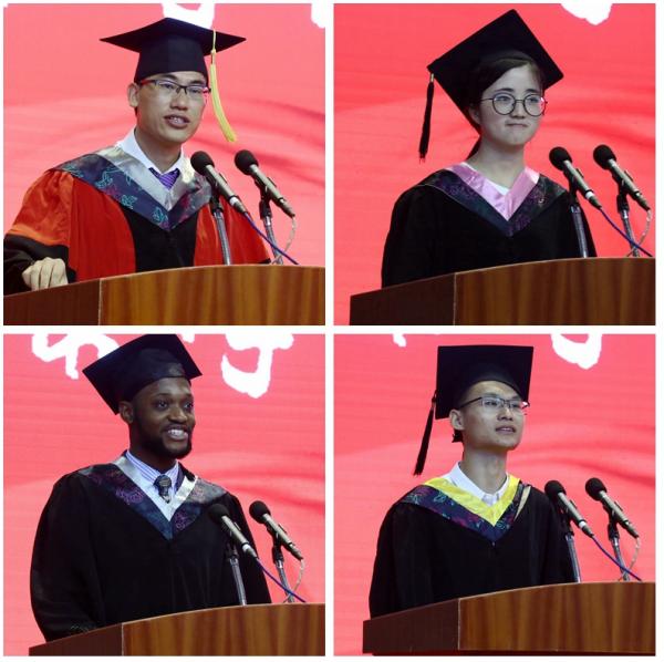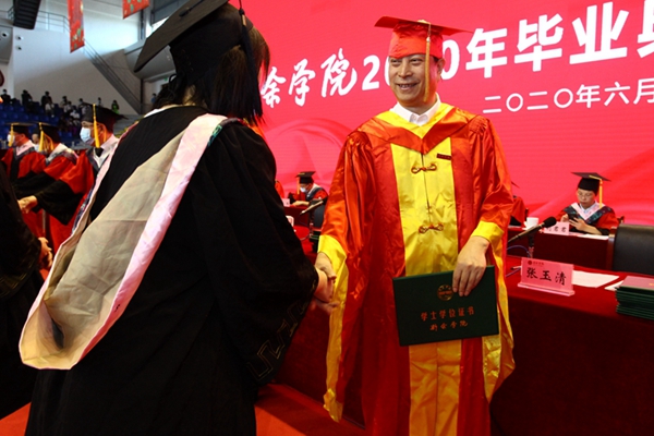 党委委员、副校长龚丽春宣读了《新余学院关于表彰2020届优秀毕业生的决定》,校领导为优秀毕业生颁奖,并为毕业同学代表颁发毕业证书和毕业纪念品——刻有学校logo和每一位同学姓名的紫檀印章。导师代表、毕业生代表、留学生代表相继发言,导师代表勉励大家,乘风破浪,再创辉煌,开启新的征程。三位来自不同专业的毕业生代表们表示了对母校的无限感谢与不舍,并表达了自己远大的志向和报效祖国的决心。