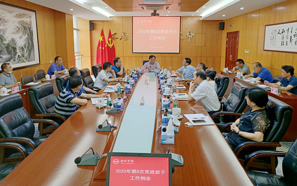 6月22日,校党委书记刘冬主持召开2020年第8次党政班子工作例会,学习习近平总书记6月17日在中非团结抗疫特别峰会上的主旨讲话精神,传达省委刘奇书记、省政府易炼红省长作形势报告会时的讲话精神,研究我校贯彻落实意见。校党政班子成员张玉清、李明斌、陈裕先、李敏、龚丽春、徐忠麟、姚伟、周文生、曾浩武出席会议,相关部门负责人参加会议。