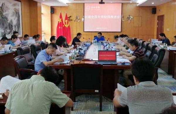为深入推进创建全国文明校园工作,7月3日下午,学校在行政楼二楼会议室召开创建全国文明校园工作推进会。校党委副书记李明斌出席会议并讲话。各部门、各二级学院、附属学校主要负责同志参加会议。会议由党委委员、宣传部部长周文生主持。