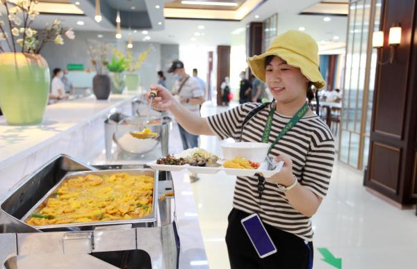 4月29日中午,新余学院新教工餐厅正式开餐,老师们一边说笑一边走进食堂。淡雅、浪漫的中式装修风格和精致、营养丰富的自助式饭菜,让老师们感觉来到了五星级酒店,都觉得幸福感倍增,并纷纷拿出手机拍照发朋友圈,在教师群里相互点赞。