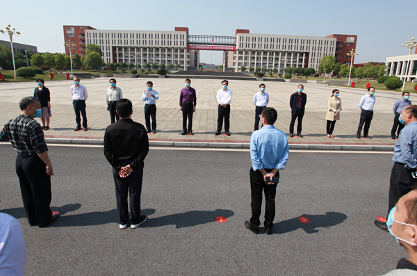 为检验各部门、各二级学院复学期间疫情防控措施落实情况和应急处置能力,进一步提升我校复学疫情防控和应急处置水平,确保学校师生员工的身体健康和生命安全,为春季复学提供坚实保障, 4月28日,学校组织开展了春季复学疫情防控应急演练。学校疫情防控领导小组组长、党委书记刘冬及校党政班子成员胡涌、陈裕先、李敏、龚丽春、郭瑞新、徐忠麟、姚伟、周文生、曾浩武以及各单位负责人现场观摩了演练。学校疫情防控领导小组组长、校长张玉清担任演练总指挥。