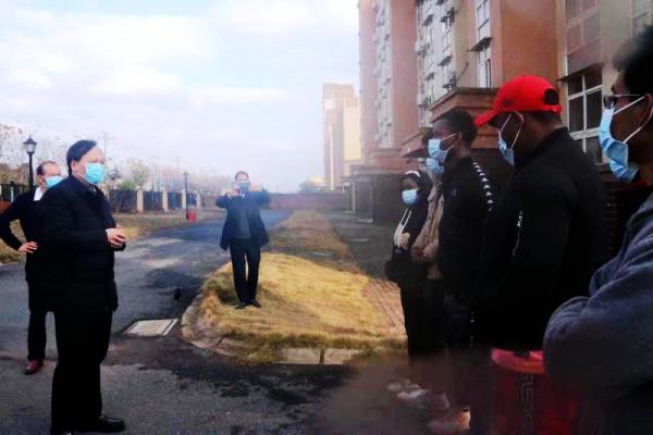 刘冬一行先后深入留学生公寓、教工小区、学生宿舍临时隔离点、学校南门等地检查疫情防控工作,代表学校党委向一直奋战在疫情防控一线的工作人员表示衷心的感谢和诚挚的慰问。