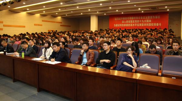 11月15日下午,校党委书记刘冬在图书馆学术讲堂,以“坚持和完善中国特色社会主义制度,推进国家治理体系和治理能力现代化”为题向学校全体政治辅导员、团学干部和学生党员共计400余人宣讲党的十九届四中全会精神。