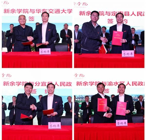 签约仪式上,我校与36家(个)院校、新宜吉六县跨行政区转型合作试验区所辖县区、企业和部门签署了合作协议。