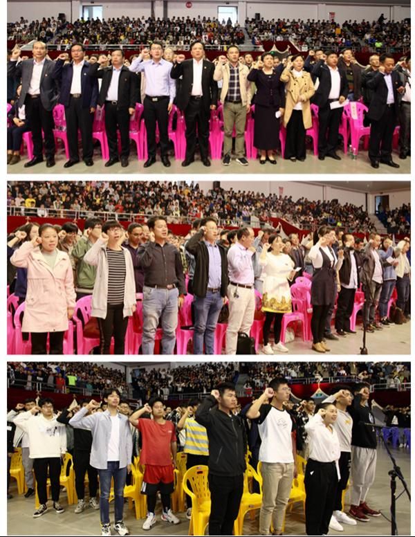 11月5日下午,学校在体育馆举行黄文秀、樊贞子同志先进事迹报告会暨忠诚宣誓仪式,贯彻落实习近平总书记关于黄文秀同志先进事迹的重要指示精神,深入学习宣传黄文秀、樊贞子两位同志的先进事迹,把向先进典型和身边典型学习作为打造“忠诚高校”的重要内容,扎实推进学校“不忘初心、牢记使命”主题教育各项重点举措落实落地。校党委书记刘冬出席会议并讲话。省委第四巡回指导组刘晨、刘鹏,校党政班子成员刘晓燕、李敏、龚丽春、郭瑞新、姚伟、周文生,全校副科级以上领导干部、全体教师、部分学生共计2600人余人参加会议。校党委副书记刘晓燕主持会议。