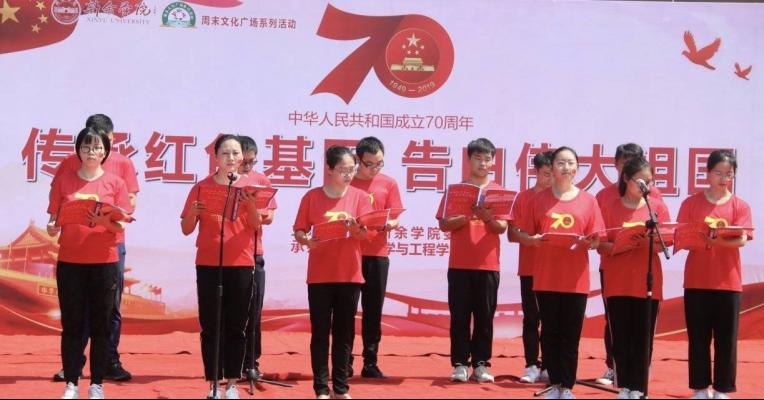 为迎接新中国成立七十周年华诞,9月29日,新能源科学与工程学院开展以“传承红色基因 告白伟大祖国”为主题的周末文化广场活动。校党委书记刘冬,校长张玉清,校党委副书记刘晓燕与师生一同参加了此活动。