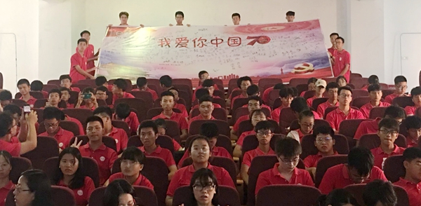 全体师生认真收看了庆祝大会、阅兵式和群众游行直播,收看过程中,不时响起雷鸣般的掌声,很多师生流下了感动的泪水,并在观看后自豪地分享了自己的感受。新中国70年栉风沐雨,70载砥砺前行,全国各族人民同心同德,艰苦奋斗,取得了令世界刮目相看的伟大成就。大家纷纷表示,习近平总书记的重要讲话气势磅礴、催人奋进,阅兵式和群众游行令人鼓舞、令人振奋。在国庆70周年这个盛大的节日里,万名师生通过唱国歌、升国旗及进行“我爱你中国”签名,收看庆祝大会和阅兵式,极大地凝聚了共识,增强了民族自信心和自豪感,上了一堂生动的爱国主义教育课。在今后的工作中,将结合学校正在开展的“不忘初心,牢记使命”主题教育,发扬艰苦奋斗、开拓创新的拼搏精神,努力工作和学习,将个人梦融入中国梦,为实现中华民族伟大复兴贡献自己的力量。