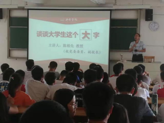党委委员、副校长陈裕先结合自己的从教经历,为19级软件工程班的学生讲述了大学之“大”的深刻内涵,充分展现了大学学习与生活的独特魅力,激励大家学会做人,学会学习,学会做事,不负韶华,以梦为马,为实现两个百年奋斗目标,为中华民族的伟大复兴奉献青春与热血。