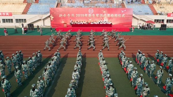 在喜迎中华人民共和国成立70周年之际,9月15日上午,我校2019级新生军训成果检阅仪式在学校南田径运动场举行,2800余名新生以此告白祖国。校党委书记刘冬出席仪式并宣布新余学院2019年新生军训闭营。校长张玉清宣读《新余学院关于表彰2019级新生军训优秀学员和优秀教官的决定》。校领导刘晓燕、胡涌、陈裕先、李敏、龚丽春、郭瑞新及承训部队相关领导出席仪式。各部门、各二级学院负责人参加仪式。仪式由校党委委员、副校长胡涌主持。