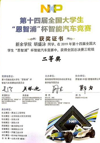 日前,第十四届全国大学生“恩智浦”杯智能汽车竞赛全国总决赛在山东大学(威海)举行,我校中兴通讯信息学院的胡盛泳、刘海龙、彭长海三位同学的智能汽车作品(指导教师陶秋香、孙燕萍)获总决赛三轮组全国二等奖。江西省获得全国表彰的高校仅两所,我校位列其中,也实现了我校在该项赛事中获得全国奖项的突破。