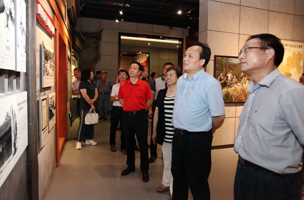 随后,校党政班子成员们来到了中央红军长征出发纪念馆。馆内展览运用了文字、图片、实物模型等展示形式,通过声、光、电的技术手段,多角度系统展现了中央红军主力部队集结于都出发长征的历史,形象直观地再现了红军长征的光辉足迹。大家仔细看图片和实物资料,回顾红军战斗革命历史,了解先烈英勇事迹,感受到了先辈们为革命事业敢于牺牲、甘于奉献的的崇高精神,从中汲取到信仰的力量,深感革命先辈之不易,今日生活之美好。
