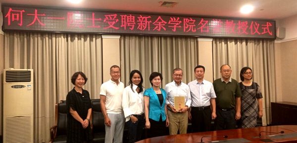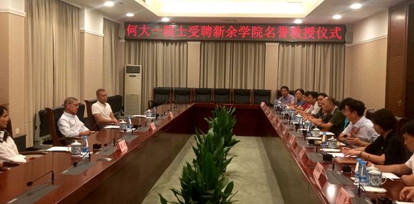 7月28日,何大一院士受聘新余学院名誉教授仪式在新余北湖宾馆多娇厅举行。副市长陈文华主持仪式,校长张玉清出席仪式。人事处、护理与康复学院负责人及教师代表参加仪式。