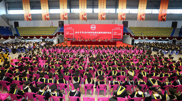 6月30日上午,在庄严雄壮的国歌声中,新余学院2019年毕业典礼暨学位授予仪式在体育馆隆重举行。校领导刘冬、张玉清、刘晓燕、胡涌、陈裕先、李敏、龚丽春出席典礼并为学生颁发毕业证书和学位证书,各二级学院、各部门负责人,导师代表、校友代表、毕业生家长代表,共计2100余人参加典礼。毕业典礼由校长张玉清主持。场馆内外气氛庄重而热烈,脸上洋溢着自信的毕业生们在这里欢聚一堂,与老师、家人、同学一起,共享毕业的喜悦。