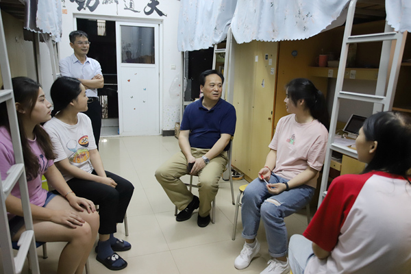 带着对毕业生的深情牵挂和美好祝愿, 6月15日晚,校党委书记刘冬在相关部门负责人陪同下来到文学与传媒学院2019届毕业生宿舍,走访看望毕业生,为毕业生送去了离别前最真挚的关怀与祝福。