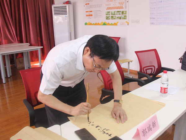 本次班会主要分为才艺展示和师生互动两个环节。在第一个环节,几位学生代表分别向大家展示了书法、舞蹈、吉他弹唱等才艺,博得满堂喝彩。表演结束,郭瑞新对大家的节目进行点评。他谈到,学习到的技艺会是我们终身的朋友,会一直跟随我们,与我们相伴;人生要培养一门兴趣爱好什么时候都可以,关键是要坚持学下去;通过一门爱好可以塑造个人的形象,提升生活品质,提高我们的交往能力。他还鼓励大家要把握机会表现自己。随后,郭瑞新向大家展示了书法和手风琴才艺,赢得了老师和同学们热烈的掌声。在互动环节,对于学生提出的“当今大学生应该术业专攻还是全面发展更重要”这一问题。郭瑞新表示,作为学生要学会转型和成长,学习永远不会毕业,大学学习应该是“授人以渔”而非“授人以鱼”,因此他鼓励同学们要全面发展,提高自己的学习和思考能力。