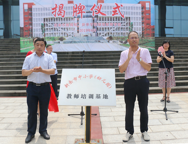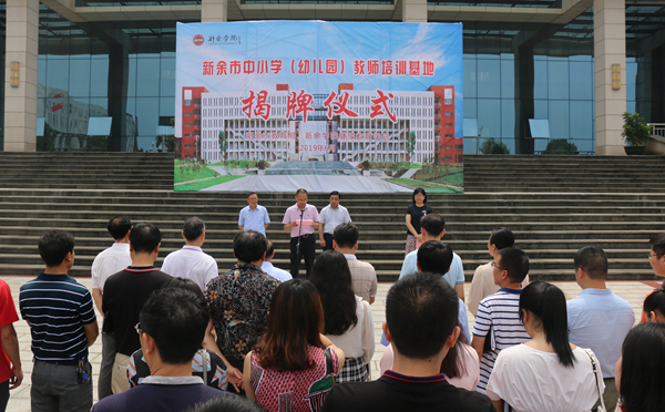 最后,陈裕先、胡绍华共同为新余市中小学(幼儿园)教师培训基地揭牌。