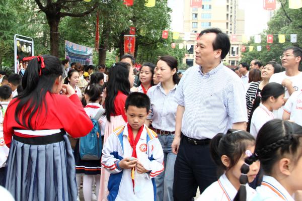 5月30日上午,附属学校校园内彩练飞舞,热闹非凡。一场以“正年少游中国庆六一齐欢乐”为主题的第二届旅游文化节正在举行。校党委书记刘冬来到附属学校与孩子们共庆“六一”。党政班子成员刘晓燕、胡涌、李敏、龚丽春、郭瑞新、姚伟、周文生、曾浩武等陪同。