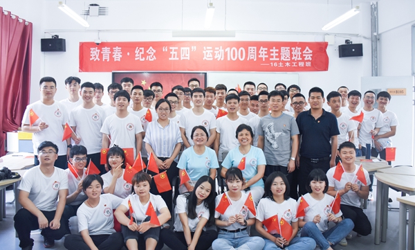 班会伊始,五位学生代表依次向大家讲述他们心中的五四、他们与五四的故事。班会中,两位建档立卡同学分别向大家分享了自己对于五四100周年的深刻感悟。最后,刘晓燕表达了自己对16土木工程班学生们的深厚感情,嘱咐学生树立坚定的理想信念,用自己的真才实学去为祖国做奉献。班会在《我和我的祖国》歌声中落下帷幕。