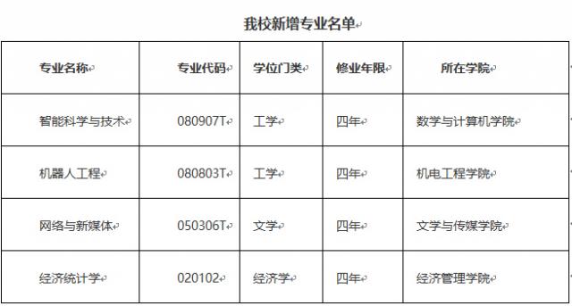 日前,教育部公布了2018年度普通高等学校本科专业备案和审批结果,其中新余学院获批新增备案4个本科专业,即智能科学与技术(专业代码:080907T)、机器人工程(专业代码:080803T)、网络与新媒体(专业代码:050306T)、经济统计学(专业代码:020102),并将于2019年秋季开始面向全国进行招生。