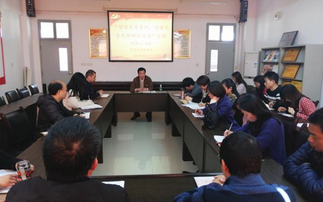 3月12日下午,校党委委员、副校长李敏在外国语学院给该学院全体教师党员上了一堂“增强党员意识,发挥党员先锋模范作用”专题党课。