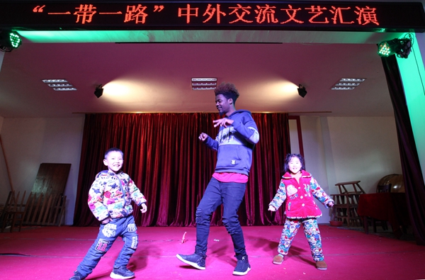留学生们和当地村民一起体验了磨豆腐、打麻糍,并亲口品尝了自己的劳动成果。学生们都表示特别甜、特别好吃。之后留学生们在当地书法爱好者指导下,亲手写下了一幅幅春联,表达了新年的祝福,抒发了此行的兴奋之情。活动现场到处都洋溢着温馨友好的氛围。随后,留学生们来到文化礼堂,和下保村民艺术剧团一起合作给村民们带来了一场精彩纷呈的文艺演出。留学生展示了非洲传统舞蹈和歌谣,尤其是林黛和文慧两位同学带来的刚果民谣,旋律悠扬,充满了非洲风情,他们的独具特色的演出得到了现场所有观众的阵阵掌声和喝彩声,当地的小朋友们和留学生也迅速建立了友谊,加入到了留学生们的演出队伍当中。最后,留学生们参观了下保革命斗争陈列馆、农耕文化展等,了解了新余新农村建设的发展变化和中国农耕文化的历史变迁,留学生们纷纷表示不虚此行。
