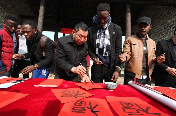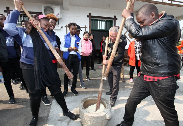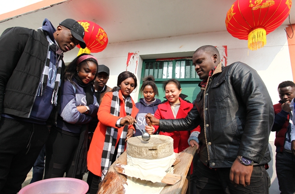 1月28日,正值中国农历小年,国际合作与交流处组织在校留学生开展了“一带一路”中非文化交流暨留学生寒假实践活动。来自赞比亚、卢旺达、刚果、喀麦隆等国的19名留学生来到渝水区良山镇下保村,和村民一起体验打麻糍、磨豆腐、写春联等当地传统民俗,感受浓浓的中国年味,喜迎中国春节的到来。
