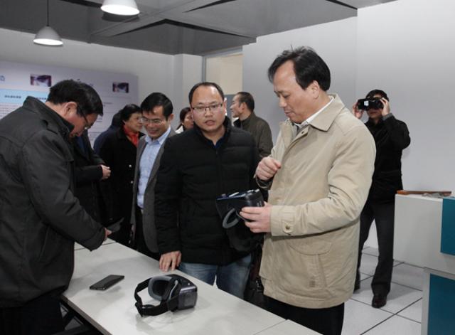 2月28日上午,校党政班子成员刘冬、刘晓燕、胡涌、陈裕先、龚丽春、郭瑞新、姚伟、周文生来到VR思政教学研究中心进行现场视察,全校中层干部随同参观。