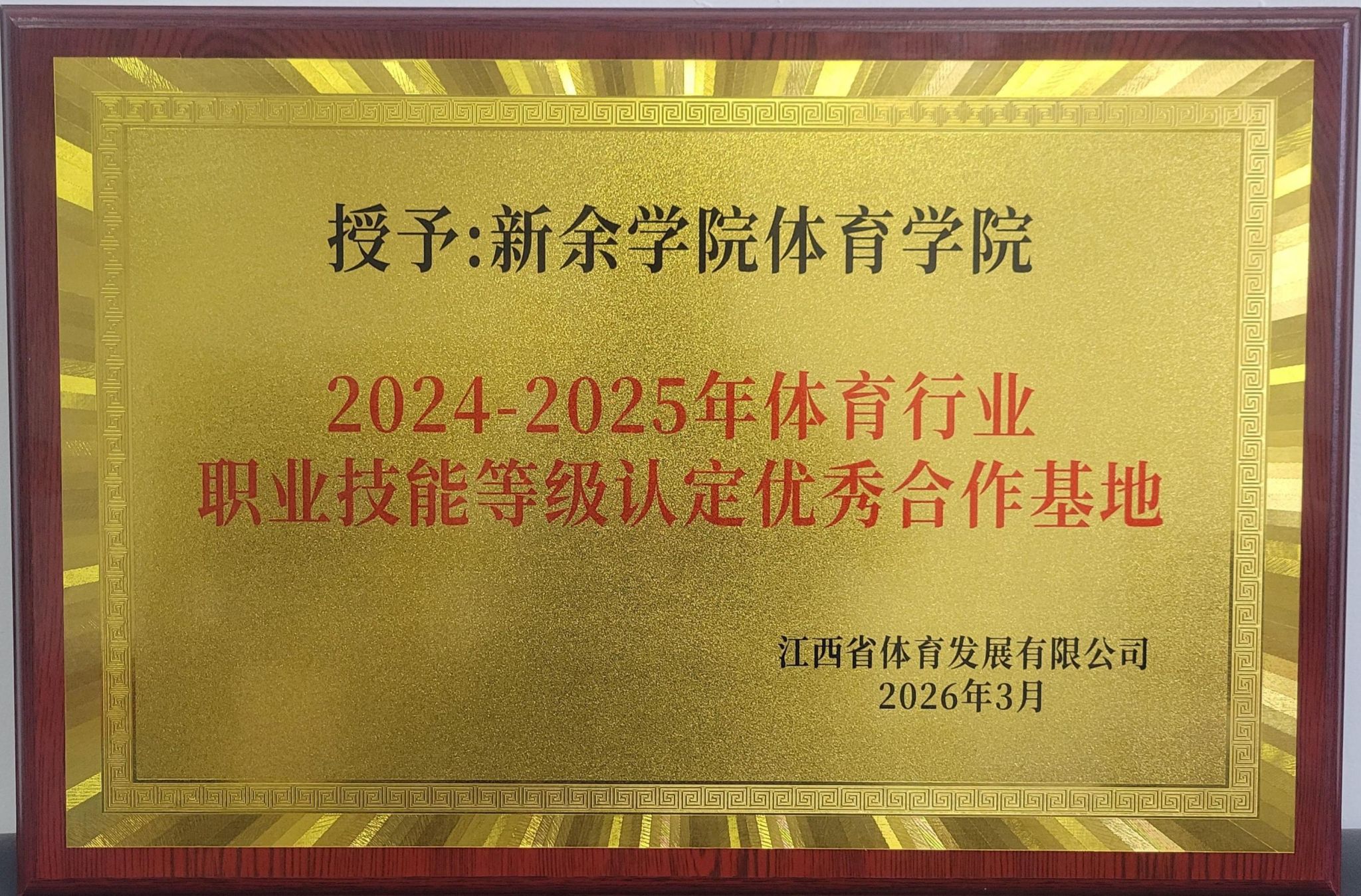 3月12日,江西省体育发展有限公司召开的2024-2025年职鉴工作总结会暨合作机构表彰大会。我校体育学院凭借在职业技能等级认定工作中的优异表现,荣获“职业技能等级认定优秀合作基地”称号。这一荣誉是省级行业主管单位对学院职业技能培训与等级认定工作专业性、规范性、实效性的高度认可与充分肯定。